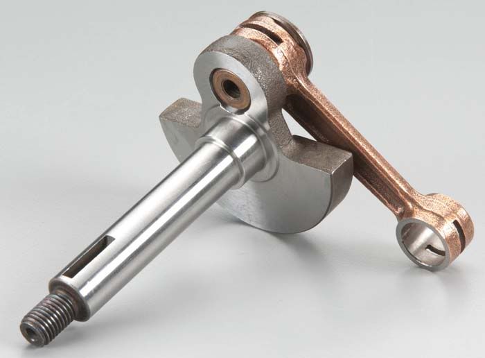 He made the crankshaft from two existing 30cc cranks. The rear