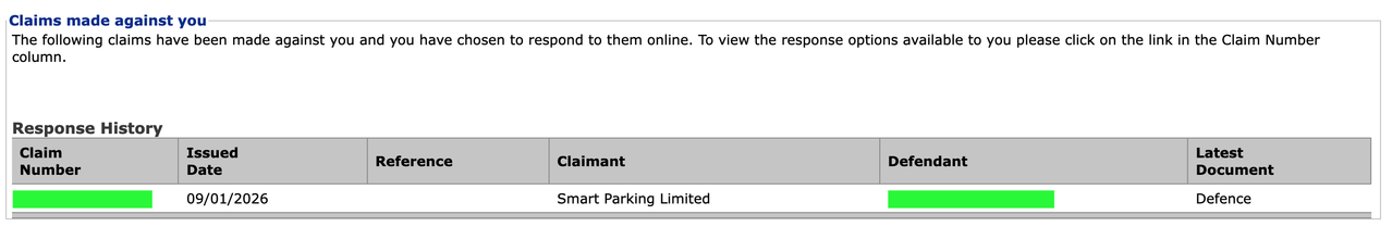 'Defence'. Separately, on the MCOL dashboard there is an entry