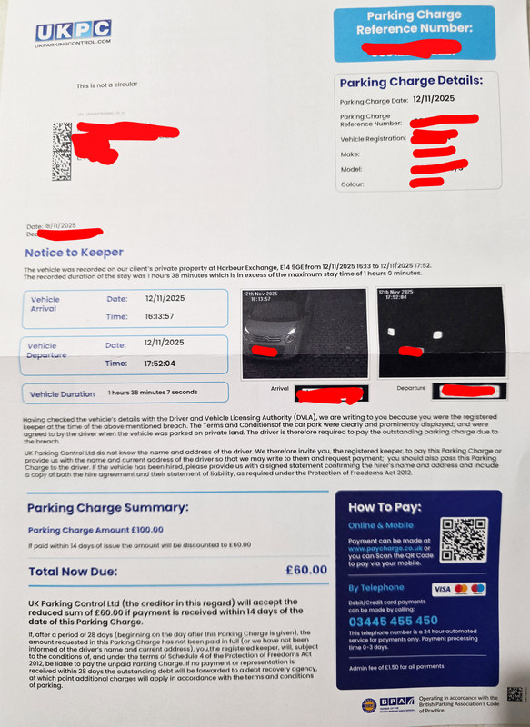Re: UKPC - Parking charge, Harbour Exchange Square London E14