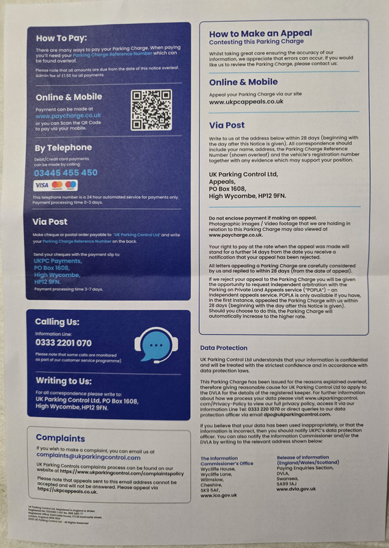 to UK Parking Control Ltd. PLEASE REFER OVERLEAF FOR PAYMENT