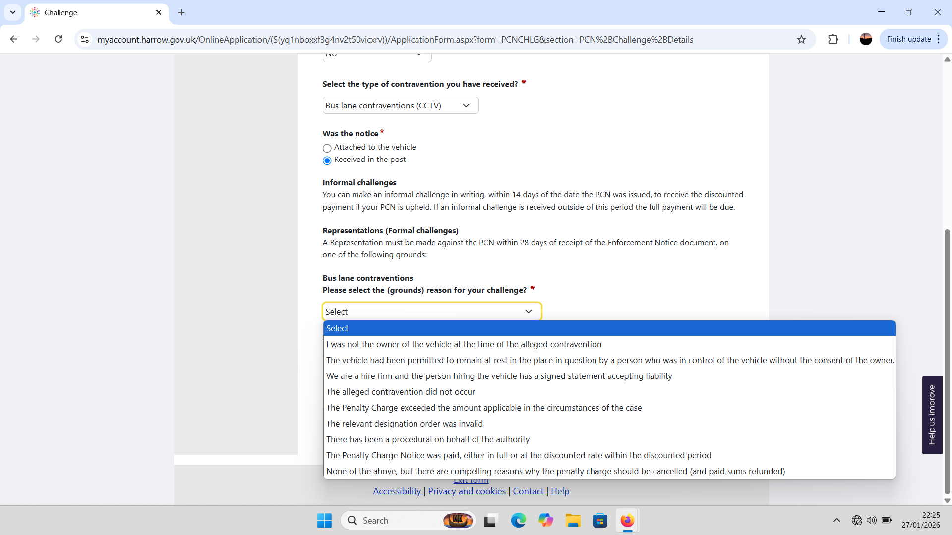 I wish to challenge the above Penalty Charge Notice issued for