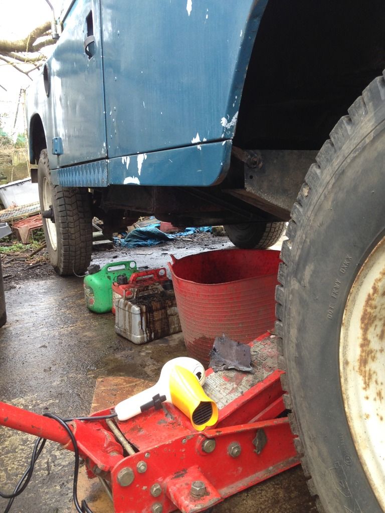 Jacked up the Land Rover on one side, to tip the remaining