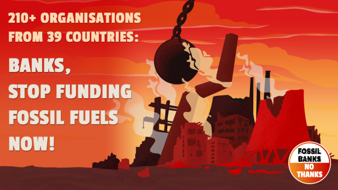 stop bank finance for fossil fuels, and 85 groups from 27