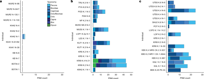 and Late Bronze Age (c). PSM, peptide spectral match.