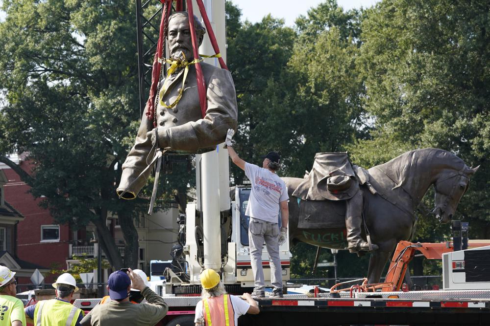 The 130-year-old, 60-foot-tall bronze statue of Confederate Gen.