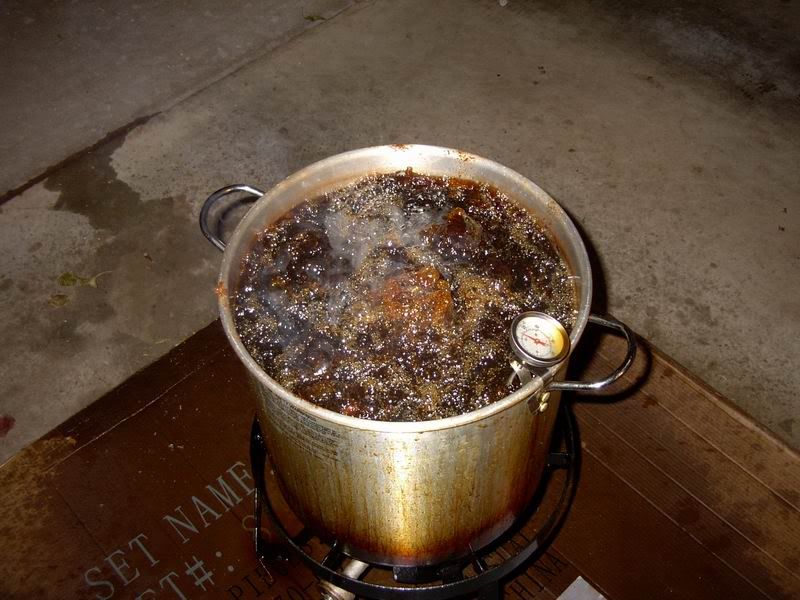 lower the turkey in. Now I have an electric fryer, works good