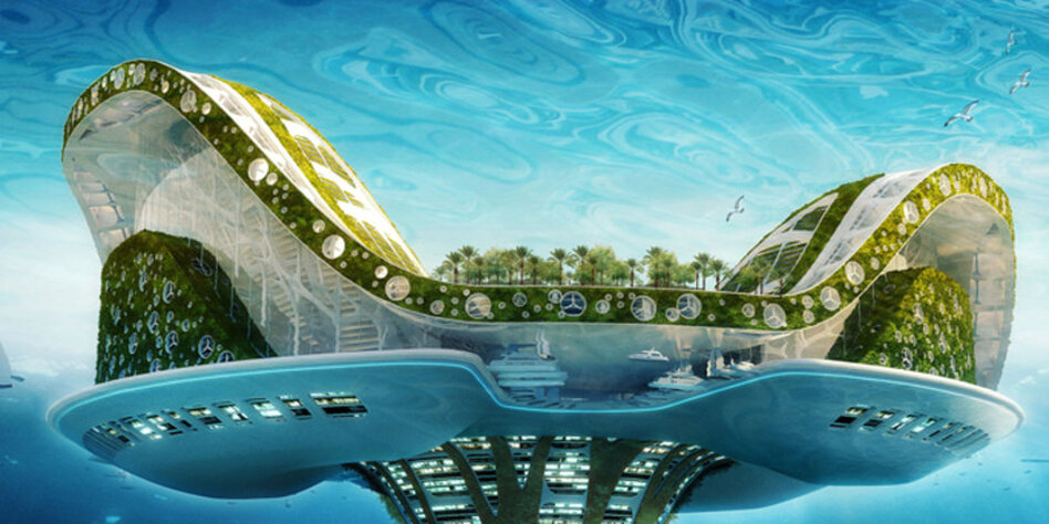 entworfenen "Lilypads". Sie treiben auf den Weltmeeren und sollen alle