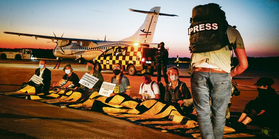> Bei der Besetzung des Lübecker Flughafens durch Aktivisten nahm die