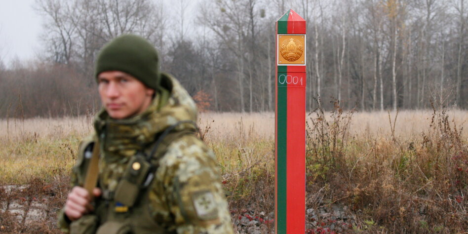 IMG Bild: Unklare Lage: Ukrainischer Soldat an der Grenze zu Belarus