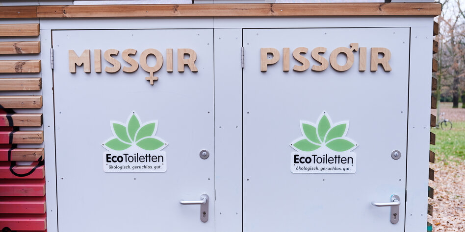 > Trockentoilette. Die Benutzung ist sogar für Menschen mit Vulva gratis.