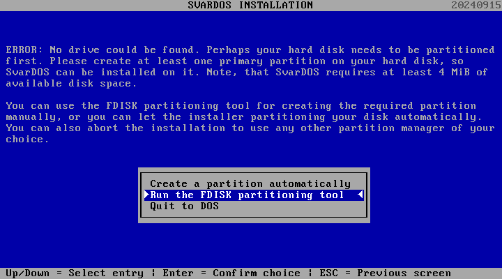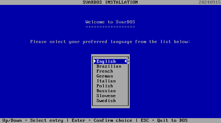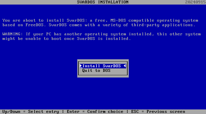 Download the SvarDOS stable build (20240915) and package ISO.