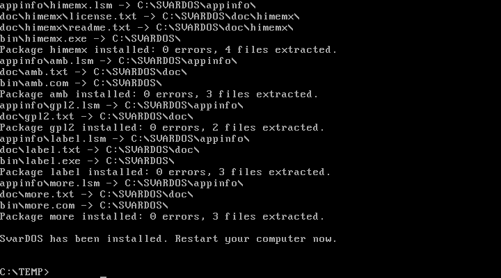 I installed SvarDOS both on real hardware and in two virtual