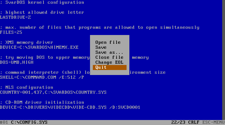 # Configure SvarDOS Real Mode (16-bit)