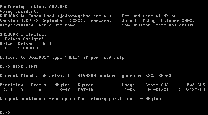 maintenance. This limits partition sizes to 2G using the SvarDOS